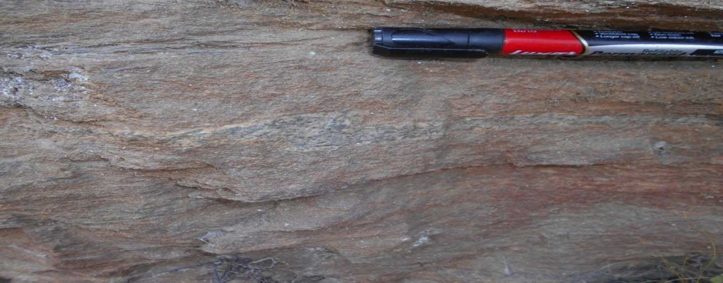 The exposure marks the starting point of inter-layering of gently dipping (10-30°) quartzite and mica schist, quartzite beds are thin while mica schist.