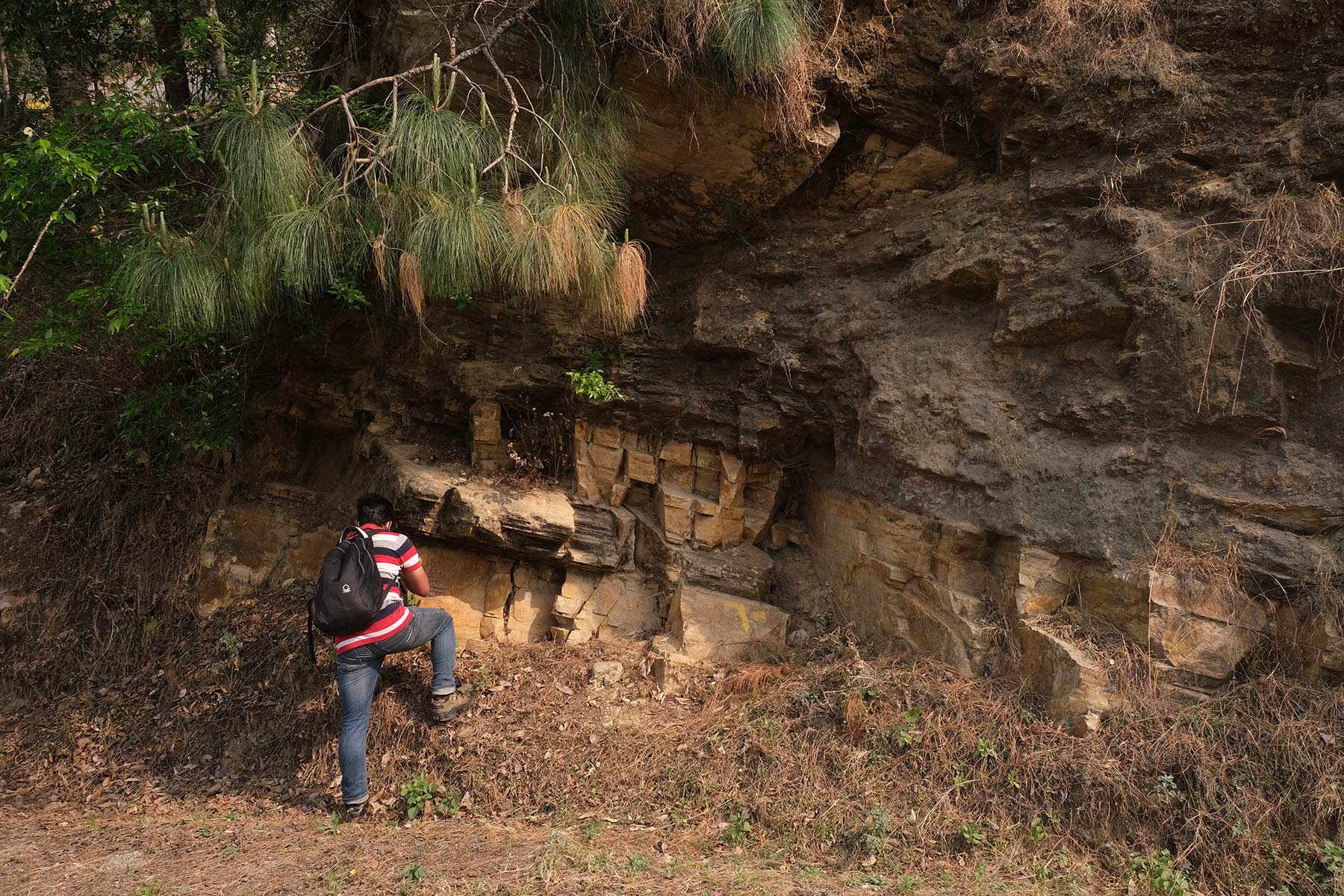 In the exposure of gently descending (10–30°), a prominent conjugate (Listric type) fracture plane is seen. Mica schist with numerous quartz lenses oriented in the same direction as the schist that is heavily fractured (fractures occurred owing to both natural and anthropogenic activity).